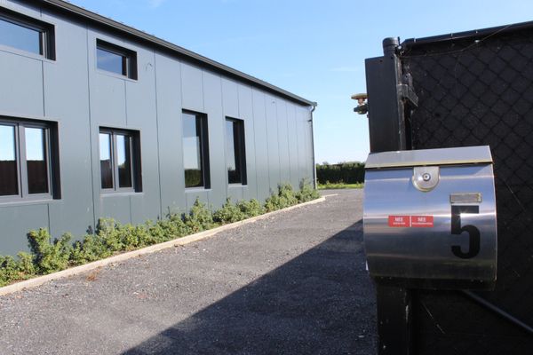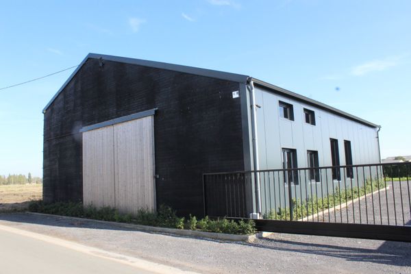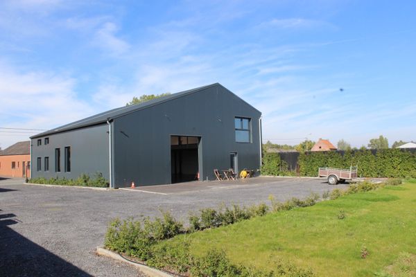 Op de grens tussen Oost- en West-Vlaanderen staat deze bijzondere hangaar te huur.